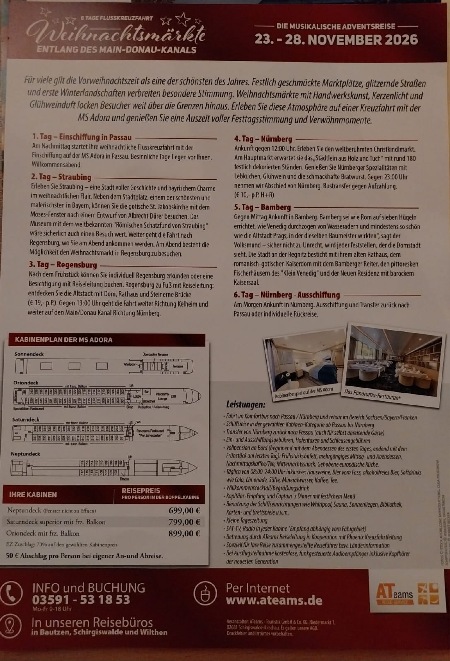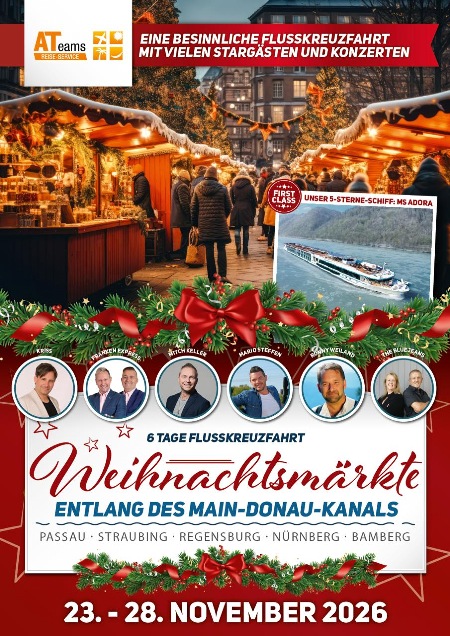 23.11.-28.11.2026 Die schönsten Weihnachtsmärkte entlang des Main- Donau- Kanals mit der A-Rose